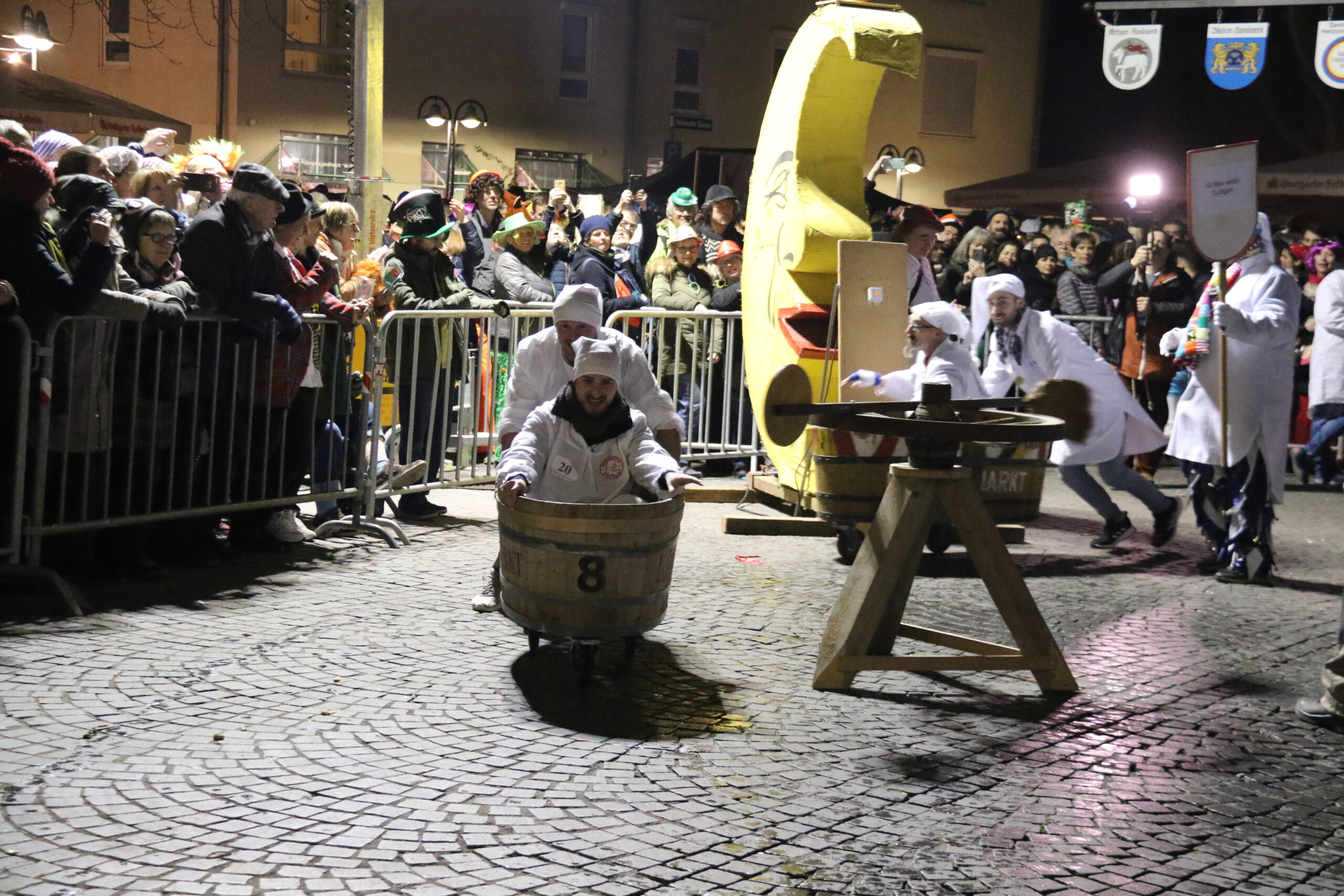 Durch einen närrischen Parcours könnt ihr euch beim anschließenden Kübelesrennen kämpfen. Das Besondere daran: den Parcours meistert ihr nicht zu Fuß, sondern in einem Holzkübel sitzend. Eins ist auf jeden Fall klar: langweilig wir es hier nicht!