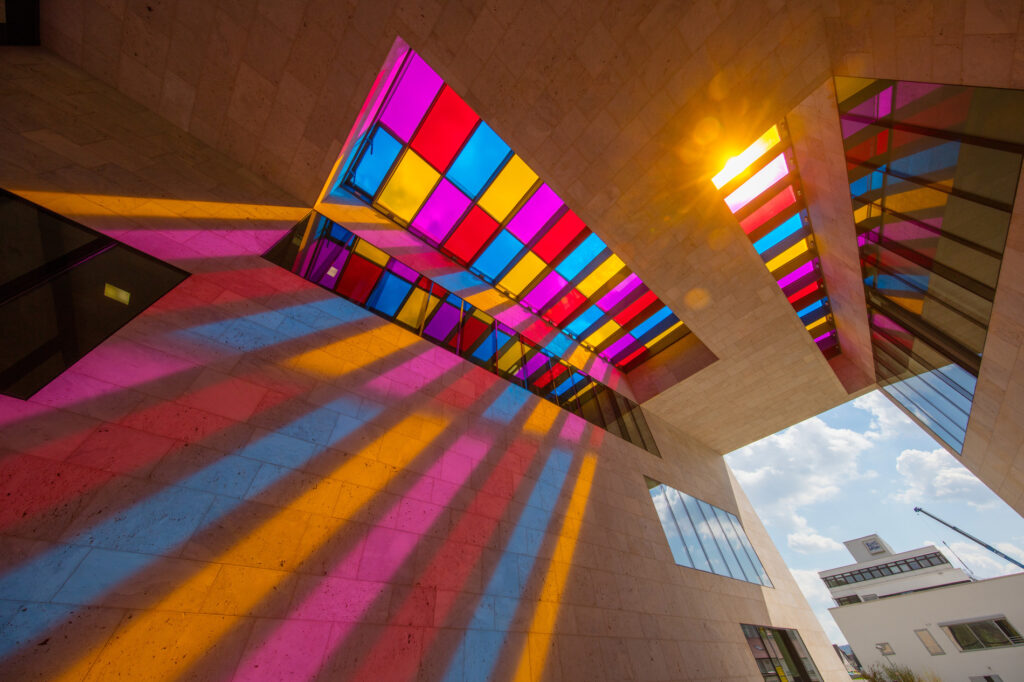 Quadratisch, praktisch, Kunst! So könnte das Motto des Museum Ritter in Waldenbuch lauten. Gezeigt wird die Sammlung von Marli Hoppe-Ritter, der Miteigentümerin der süßen Schoko-Quadrate Ritter Sport, sowie Ausstellungen einzelner Künstler:innen. Immer im Fokus: geometrisch-abstrakte Kunst, oftmals mit dem Quadrat als Ziel oder Ausgangspunkt. In eckiger und offener Architektur eingebettet, könnt ihr hier immer neue Seiten der geometrischen Form entdecken. Natürlich ebenfalls geometrisch, aber deutlich süßer: Direkt nebenan ist der Schoko Shop, in dem ihr euch mit Ritter Sport-Schokolade eindecken könnt.